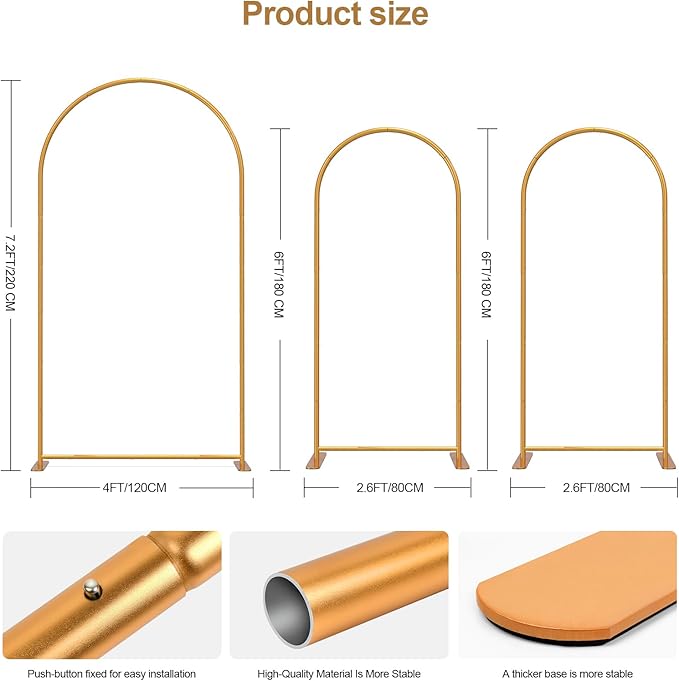 The sleek gold finish pairs beautifully with any theme and can be styled with florals, balloons, draping, or signage to match your vision. Whether you’re going for a romantic, glamorous, or minimalist vibe, these arches add the perfect blend of sophistication and style to your celebration.