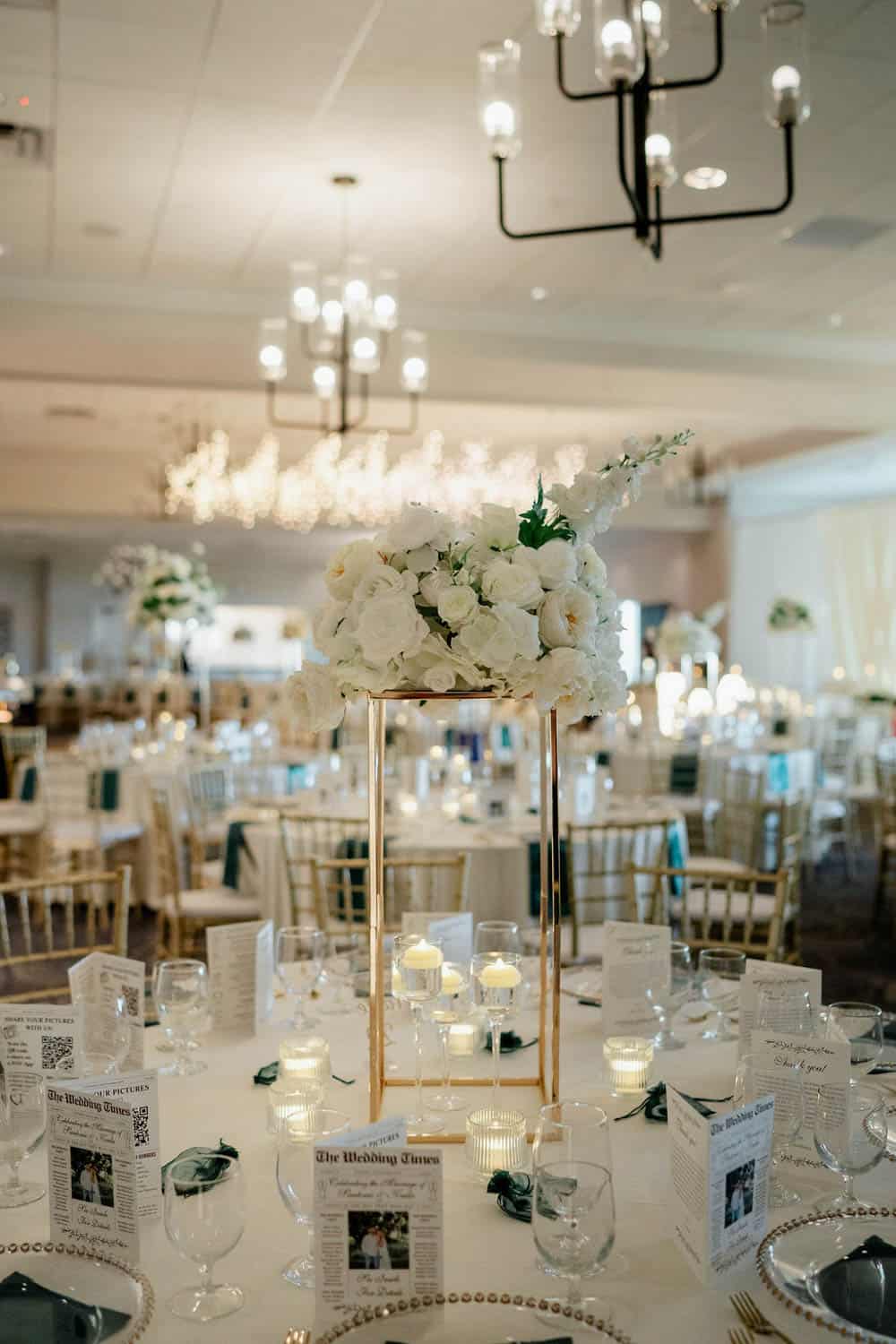 Centerpieces and table decor should enhance the overall design, not compete with it. The goal is to create tables that feel balanced, intentional, and visually consistent across the room.